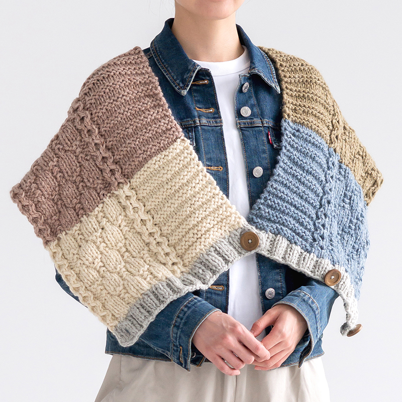 1つでシンプルにスヌードとして、2つをつなげてショールやマフラーに。 ボタンを閉じたり繋げたり変化が楽しめる”3wayスヌード”です。柔らかな『ベーシック極太』使用で軽くてとてもあったかい!
