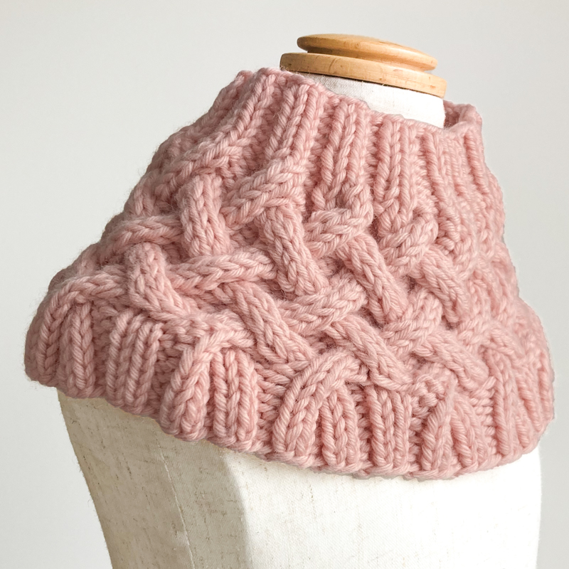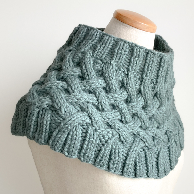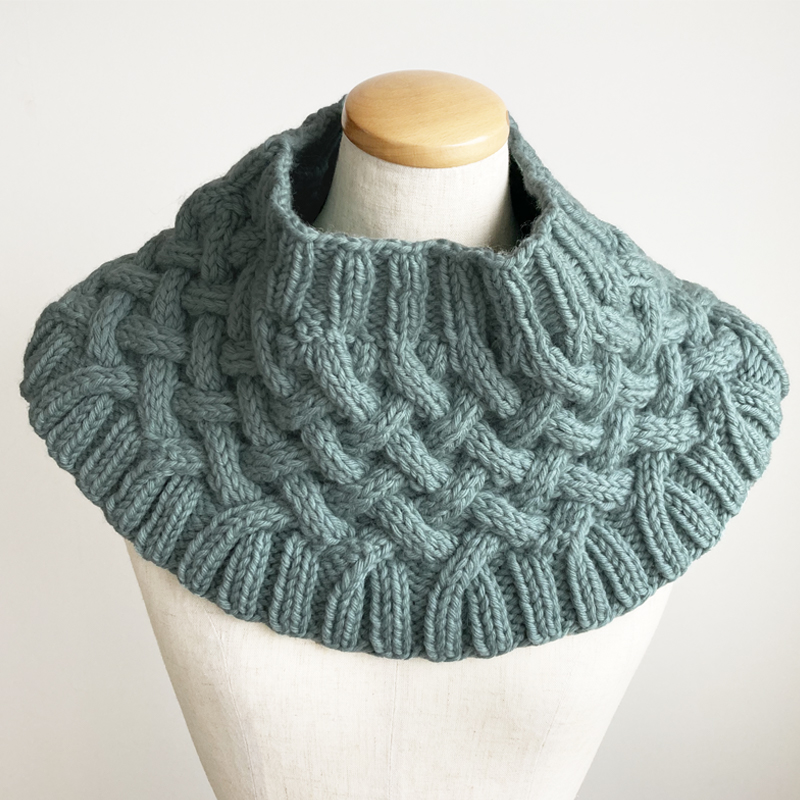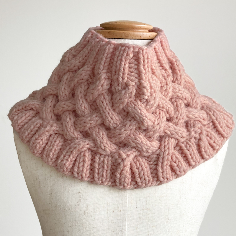 太めの糸で編んだ首から肩までカバーしてくれる台形のスヌード。立体感のある交差模様は、程よく厚みがあるので暖かく、付け心地も軽やか。お出かけはもちろん、おうち時間にも寄り添ってくれる、頼りになる1枚。