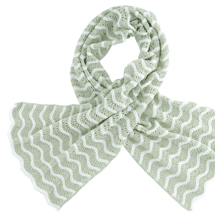 透かしが入った涼し気なストール。ホワイトとミントグリーンの爽やかな2色使いの流れるような波模様が印象的です。