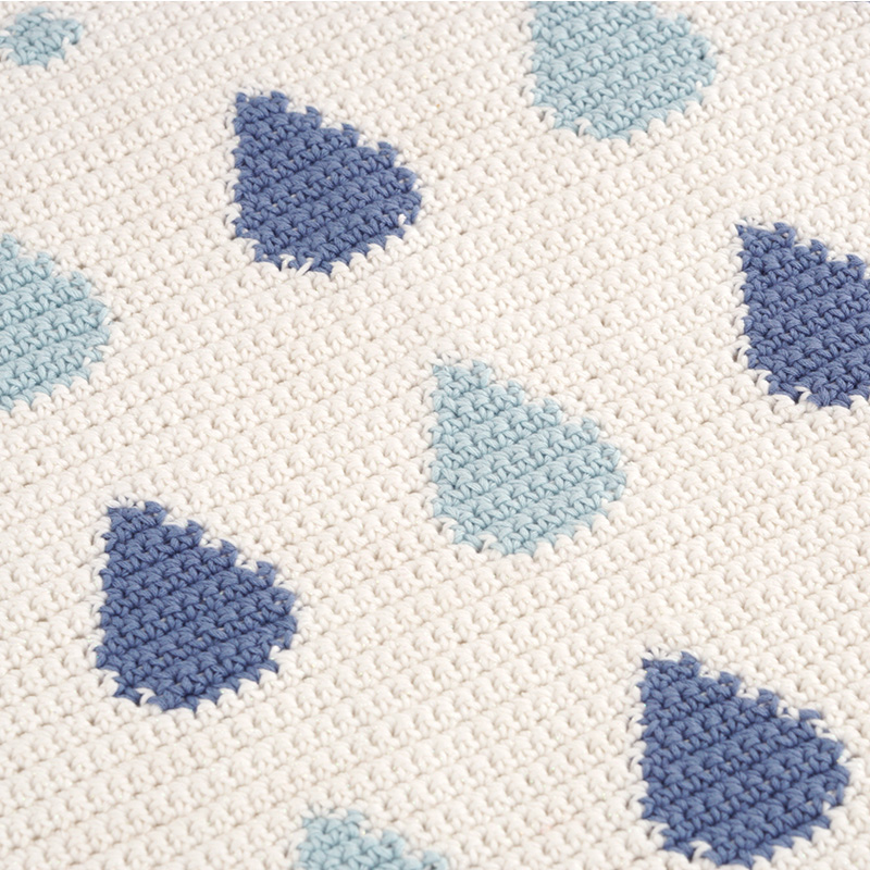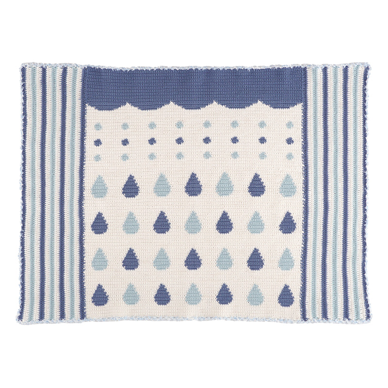 しずく柄が可愛い♪爽やかな色使いのコットンブランケット。4種類の柄を組み合わせています。ひざ掛け等にちょうどいいサイズ。