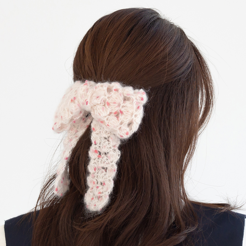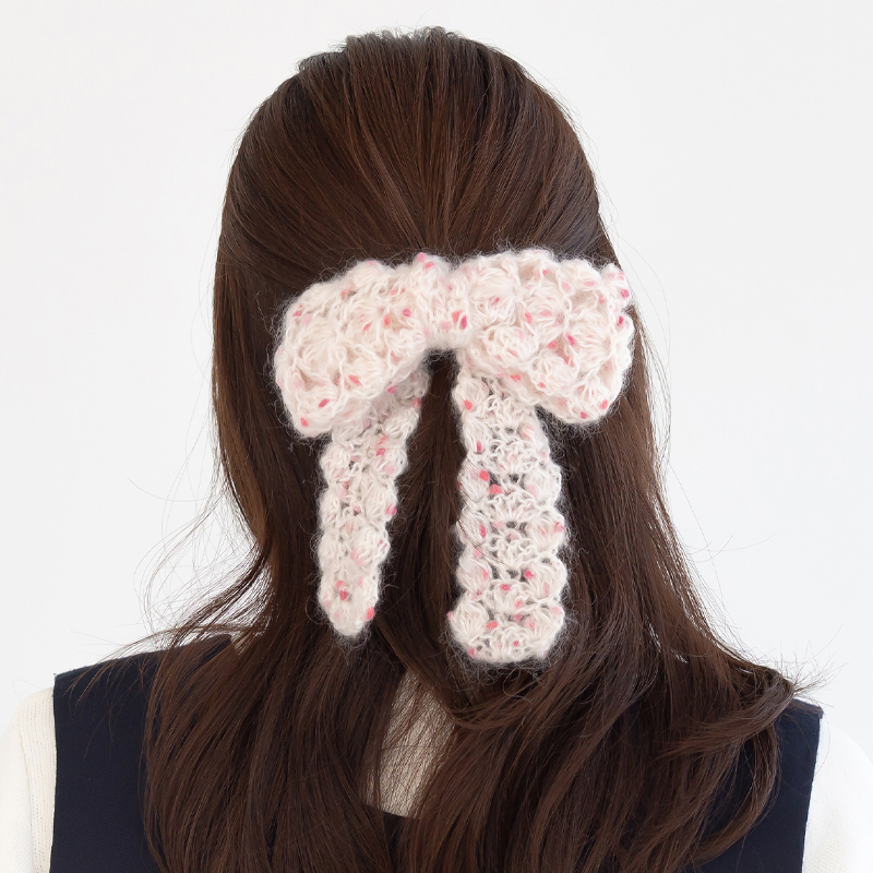 ふわふわ柔らかな毛糸で編んだ「リボンチャーム」です。バッグや帽子に付けたり、ヘアアクセサリーにもぴったり。ぽんぽんワルツはかぎ針、モニは棒針で編んでいます。糸を代えて沢山編んでみたくなります♪