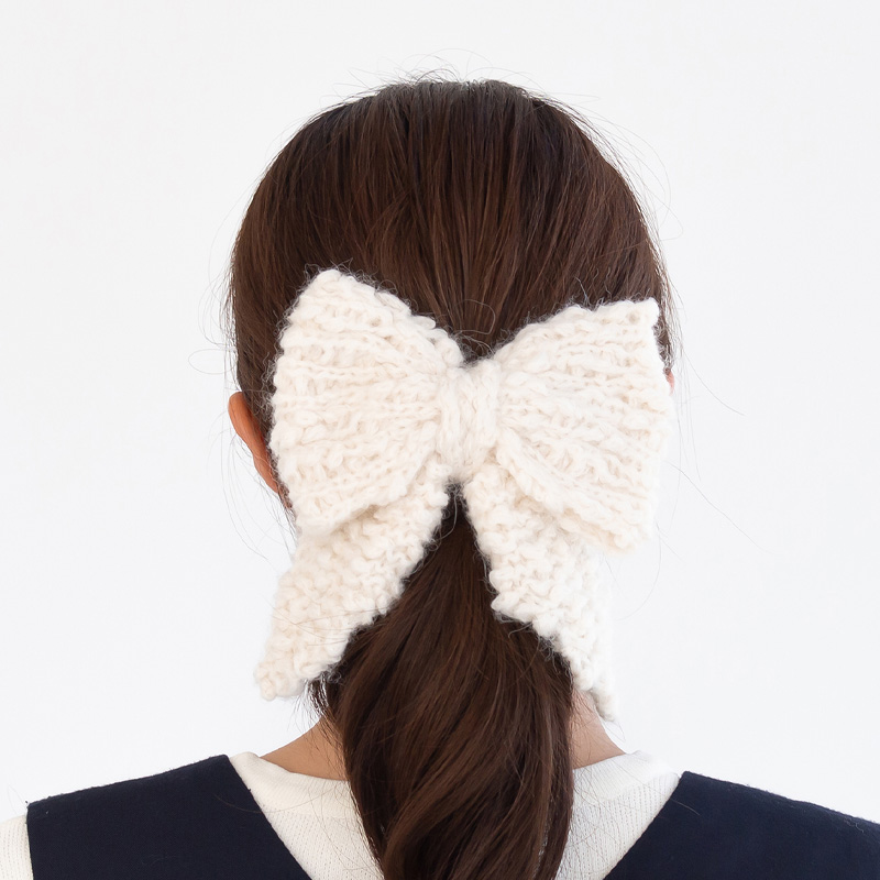 ふわふわ柔らかな毛糸で編んだ「リボンチャーム」です。バッグや帽子に付けたり、ヘアアクセサリーにもぴったり。ぽんぽんワルツはかぎ針、モニは棒針で編んでいます。糸を代えて沢山編んでみたくなります♪