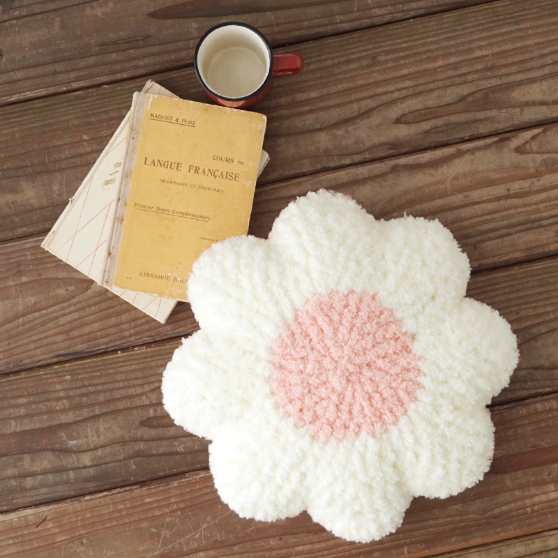 とっても可愛くてお部屋のアクセントにぴったり♪お花の形のクッションは、ふっくらもちもちの手触り。表と裏で色が反転しています。