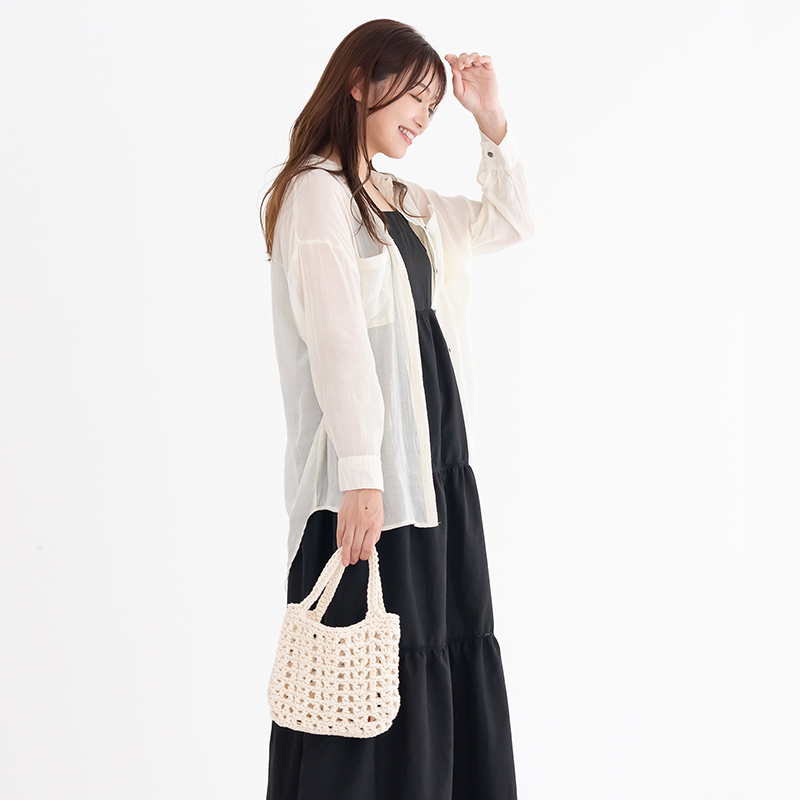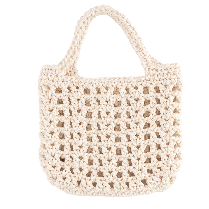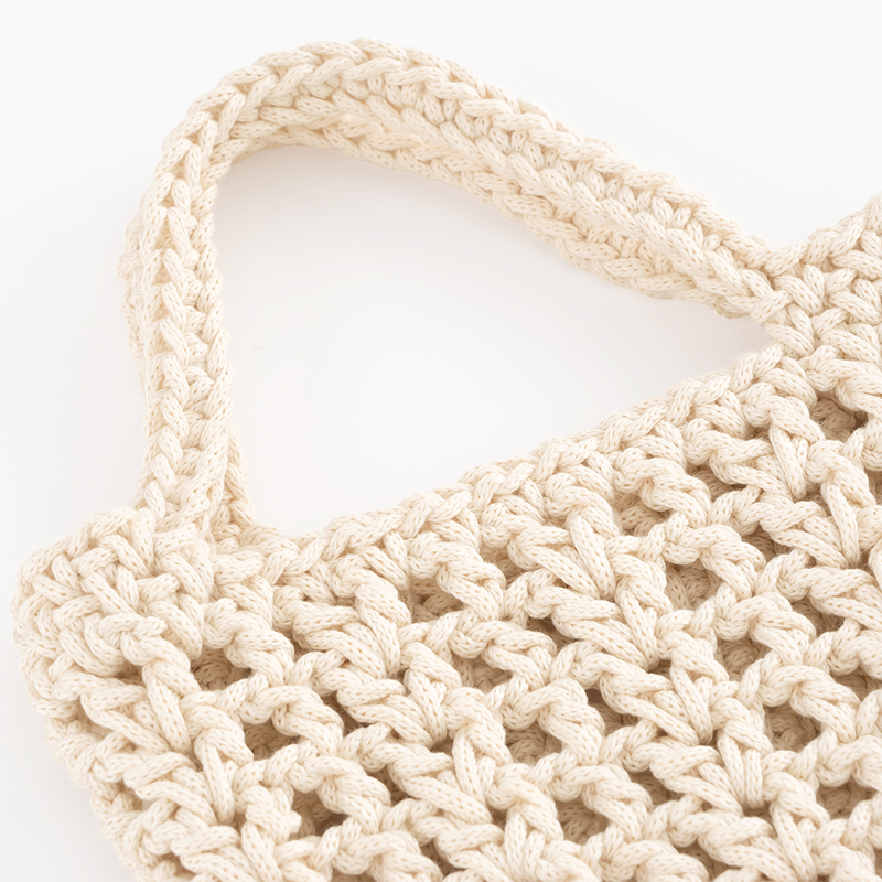 ヤーンパスタ1玉で編める小ぶりなバッグです。柔らかでモチっとした質感のコットン100%。