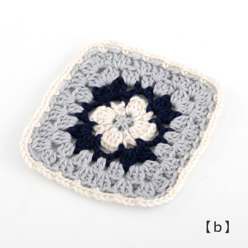 【a】と【b】は、同じ編み図で編んでいます。編み図は初心者さんにも分かりやすい編み方の説明文付き。