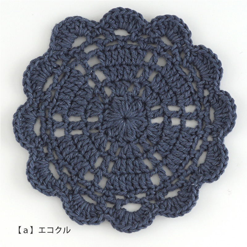 程よく透かしを入れた花モチーフは、シンプルで使いやすいデザイン。そのままコースターや編み繋いでブランケットなどに。