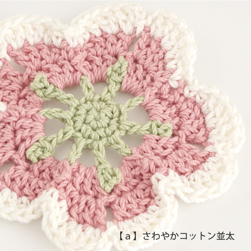 【a】と【b】は、同じ編み図で編んでいます。編み図は初心者さんにも分かりやすい編み方の説明文付き。