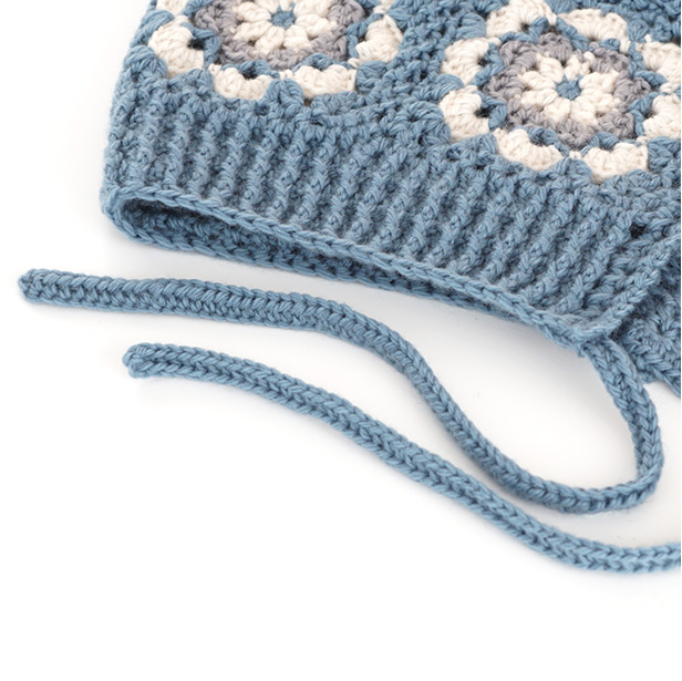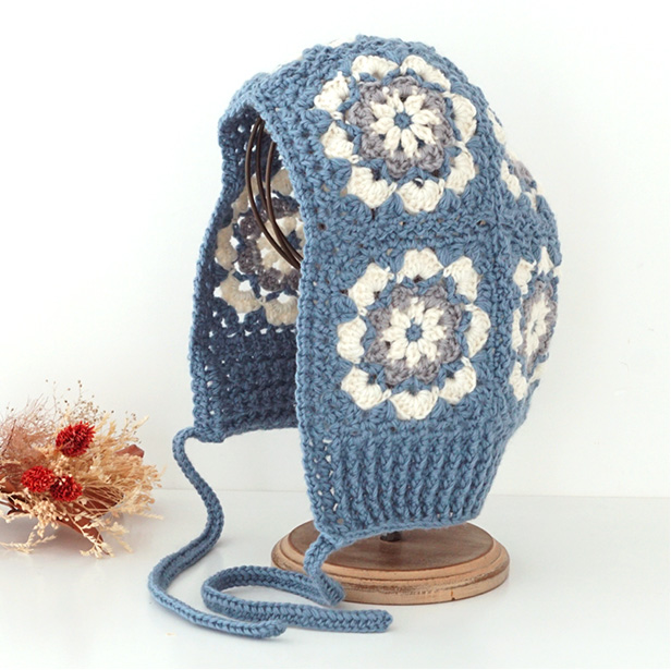 モチーフを7枚つなげて仕立てたバラクラバ。