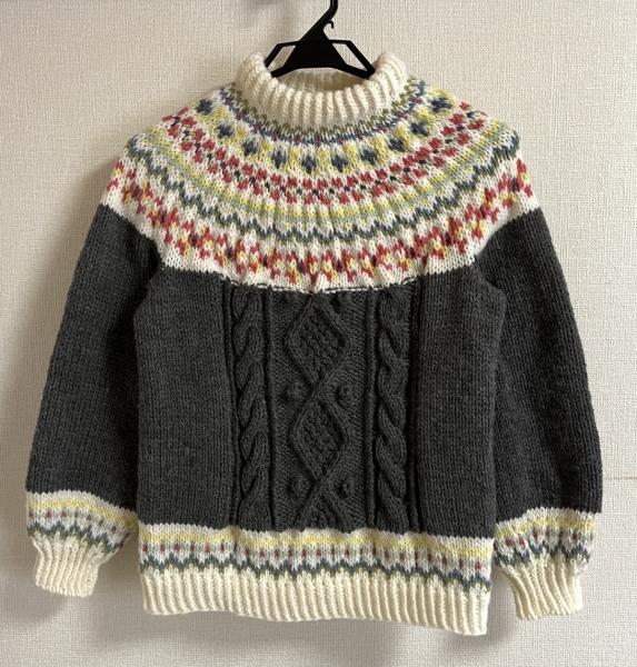 余り糸なども活用してカラフルに配色してみました。お気に入りの一品です。伸びやすい衿は二重にしました。