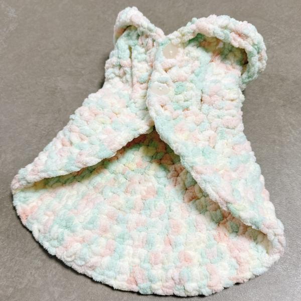 友達が飼っているわんちゃんに何か作って欲しいとのリクエストを受けたので冬っぽいマントを編みました!