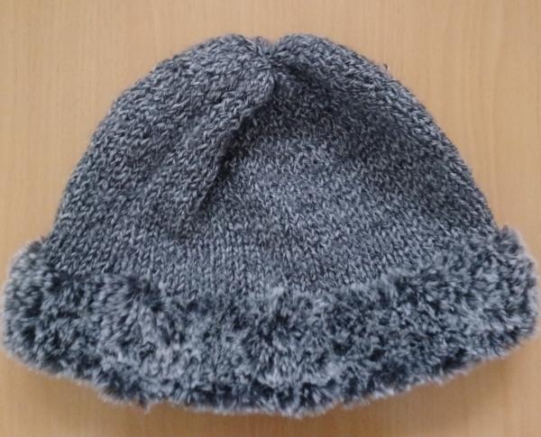 耳に当たる部分は毛足の長い毛糸出編みました。