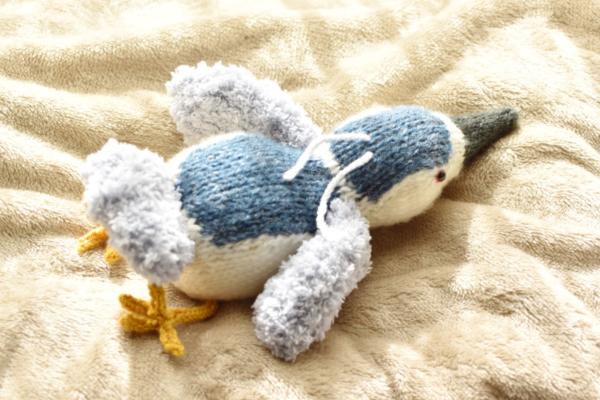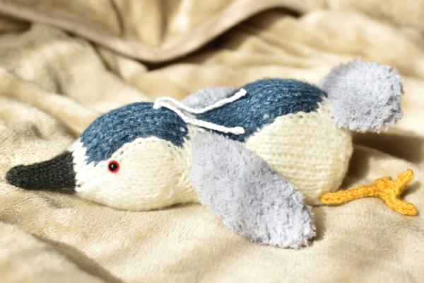 大好きな野鳥であるゴイサギがくったりとくつろぐ様子を棒針編みで表現しました。
