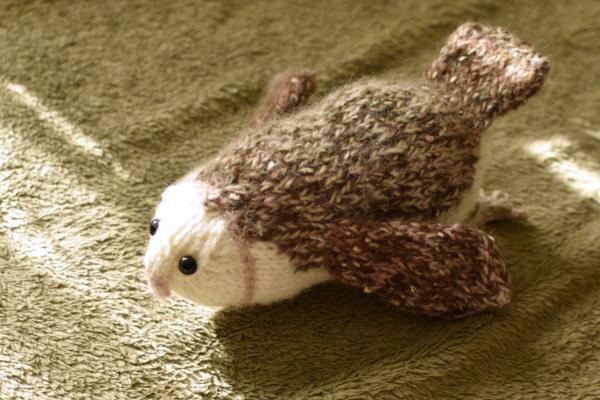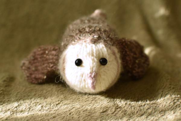 かわいいメンフクロウがくったりとくつろぐ様子を棒針編みで表現しました。ちょっとおでぶになっちゃいました。