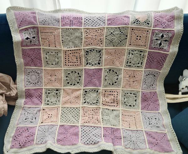 とても根気のいる作品でしたが、仕上がりがふんわりとしていて、薄いのに暖かいと家族にも好評でした。