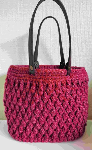 セリアnewメランジアクリルのNo.14に一目惚れ、赤いバッグを編みたくて試行錯誤で仕上げました。