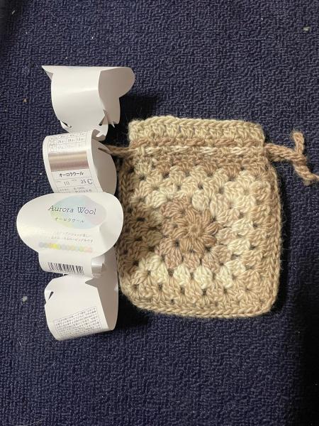オーロラウールが2玉ちょっとあったので、可愛い巾着を編もうと思って作りました。